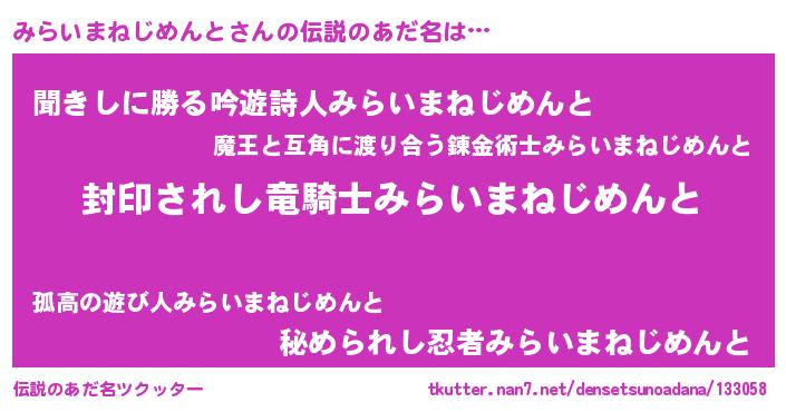 | 欧米人風あだ名 | 『マイケルみらいまねじめんと』 |