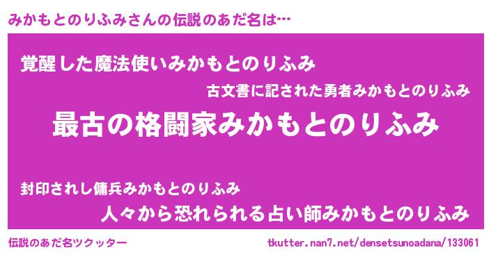 | 意味不明あだ名 | 『たけのこ科みかもとのりふみ属』 |