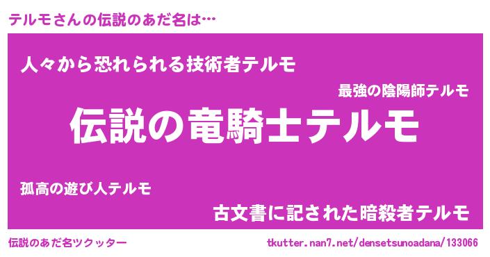 | 男性向けラノベタイトル風あだ名 | 『テルモの憂鬱』『緋弾のテルモ』 |