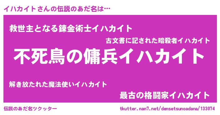 | ヒーロー風カッコイイあだ名 | 『スーパーイハカイト』『ネオイハカイト』 |
