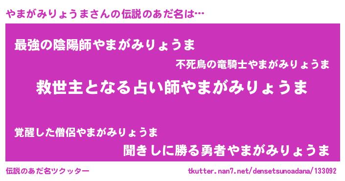 | 男性向けラノベタイトル風あだ名 | 『ノーゲーム・ノーヤマガミリョウマ』 |