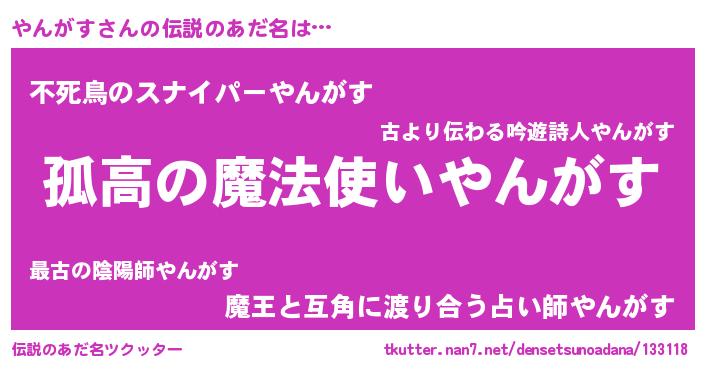 | 胡散臭い通販商品みたいなあだ名 | 『信頼と実績のサプリメント…その名も「やんがす」』 |