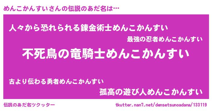 | 男性向けラノベタイトル風あだ名 | 『冴えないめんこかんすいの育てかた』 |