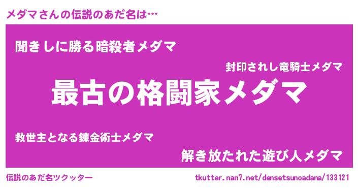 | ポケモン風あだ名 | 『メダキング』『メダゴンZ』 |