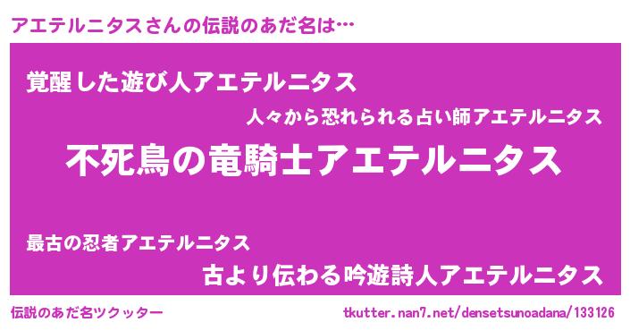 | ポケモン風あだ名 | 『アエチュウ』『ヒアエテルニタス』 |