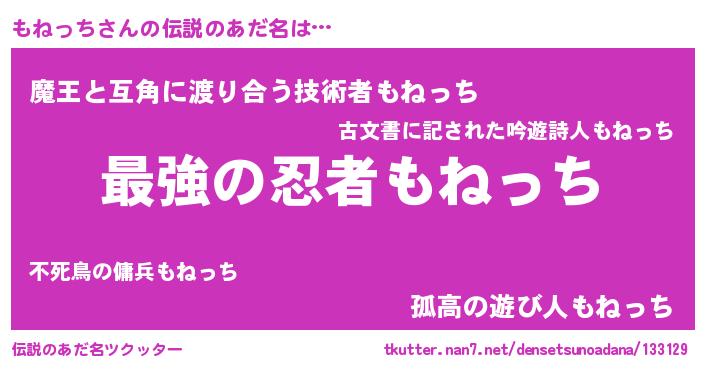 | 胡散臭い通販商品みたいなあだ名 | 『あなたにだけ特別に提供する限定10本のレアな日本酒…その名も「もねっち」』 |
