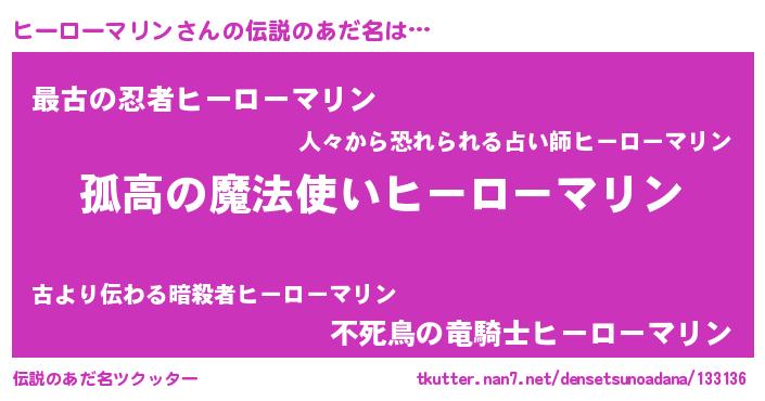 | ポケモン風あだ名 | 『ヒーセウス』『ヒヒーローマリン』 |