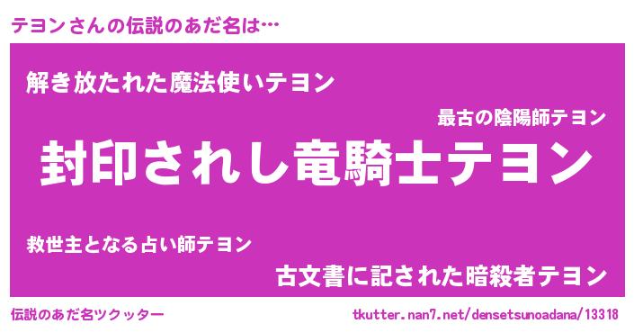 | ヒーロー風カッコイイあだ名 | 『スーパーテヨン』『幻影騎士テヨ』 |