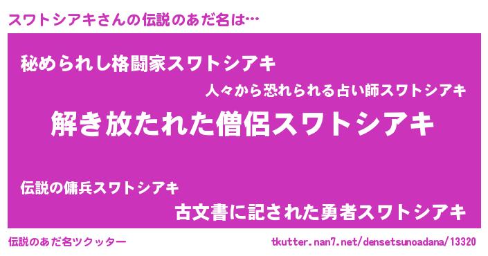 | ポケモン風あだ名 | 『スワキング』『ヒスワトシアキ』 |