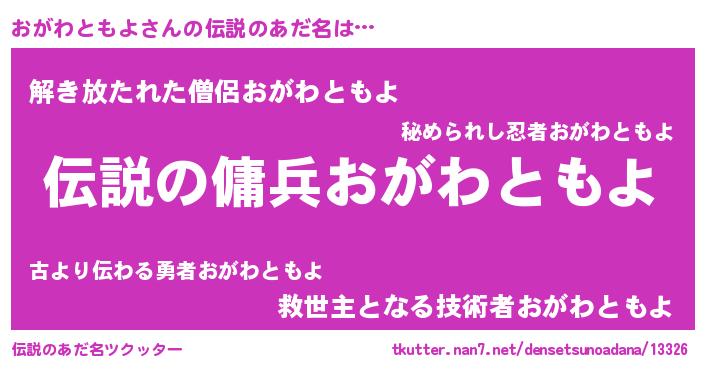 | 肩書あだ名 | 『おがわともよ少将』『おがわともよ塾長』 |