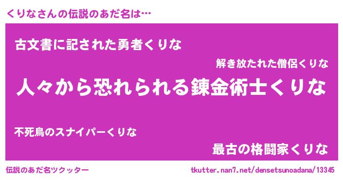 | 意味不明あだ名 | 『自称くりな』『住所不定無職くりな(13歳)』 |