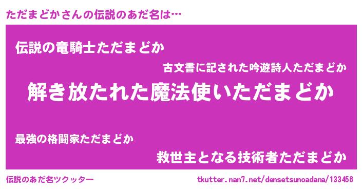 | 胡散臭い通販商品みたいなあだ名 | 『伝統あるサプリメント…その名も「ただまどか」』 |