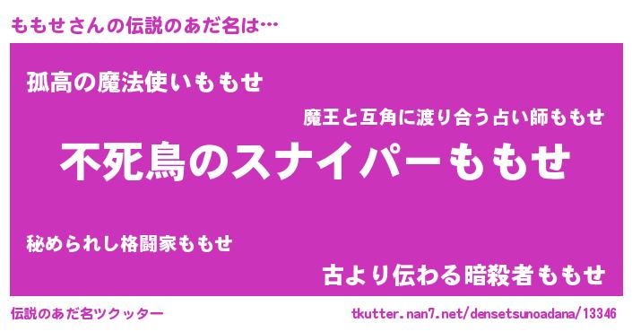| 胡散臭い通販商品みたいなあだ名 | 『モテモテ間違いなし霊験あらたかなお札…その名も「ももせ」』 |