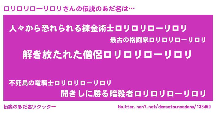 | 意味不明あだ名 | 『とにかく怪しいロリロリローリロリ』 |