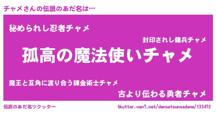 | ヒーロー風カッコイイあだ名 | 『黄金騎士チャ』『究極戦士チャメ』 |
