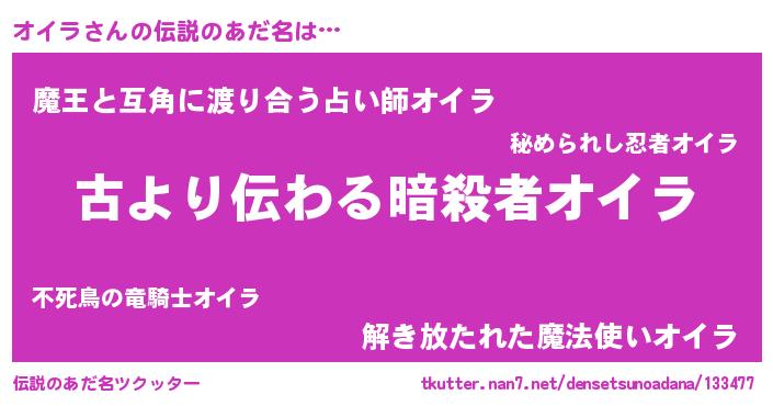 | ヒーロー風カッコイイあだ名 | 『ネオオイラ』『超時空戦士オイラ』 |