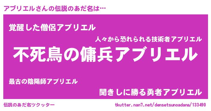 | 男性向けラノベタイトル風あだ名 | 『アブリエルアートオンライン』 |