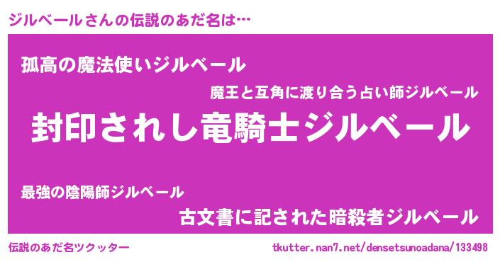 | 意味不明あだ名 | 『ペロリンジルベール』『自称ジルベール』 |