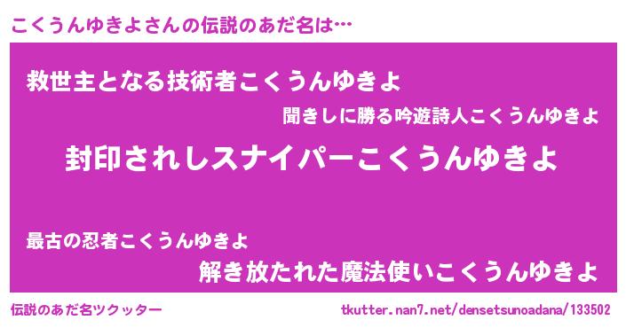| ヒーロー風カッコイイあだ名 | 『スーパーコクウンユキヨ』 |