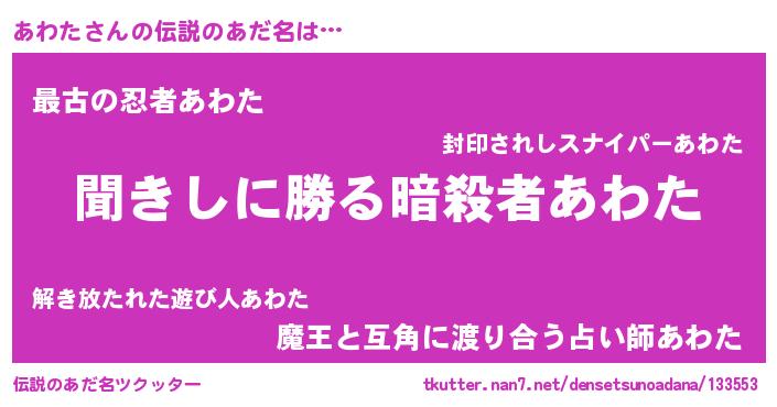 | ヒーロー風カッコイイあだ名 | 『超時空戦士アワタ』『ネオアワタ』 |