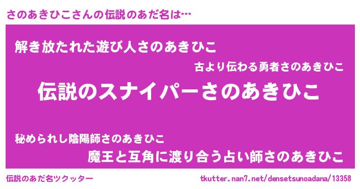 | 男性向けラノベタイトル風あだ名 | 『さのあきひこの憂鬱』 |