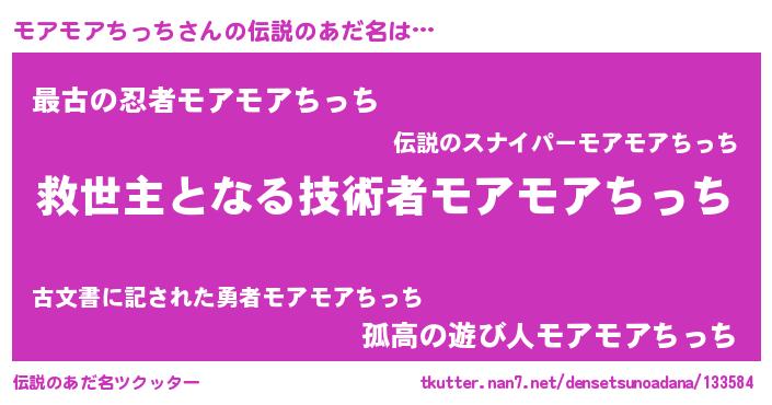 | 男性向けラノベタイトル風あだ名 | 『うちのモアモアちっちが世界を掌握している!』 |