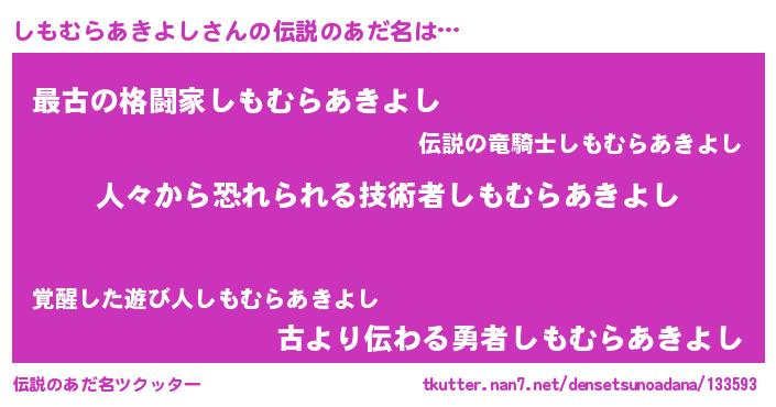 | 意味不明あだ名 | 『自称しもむらあきよし』 |