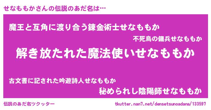 | 男性向けラノベタイトル風あだ名 | 『ダンジョンにせなももかを求めるのは間違っているだろうか』 |