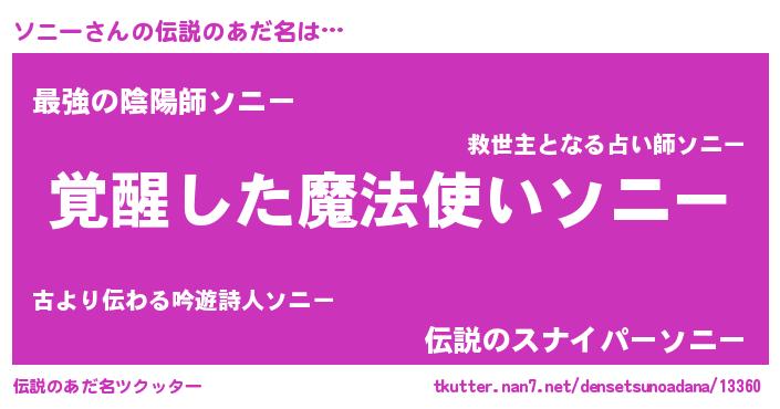 | 意味不明あだ名 | 『とにかく怪しいソニー』『自称ソニー』 |