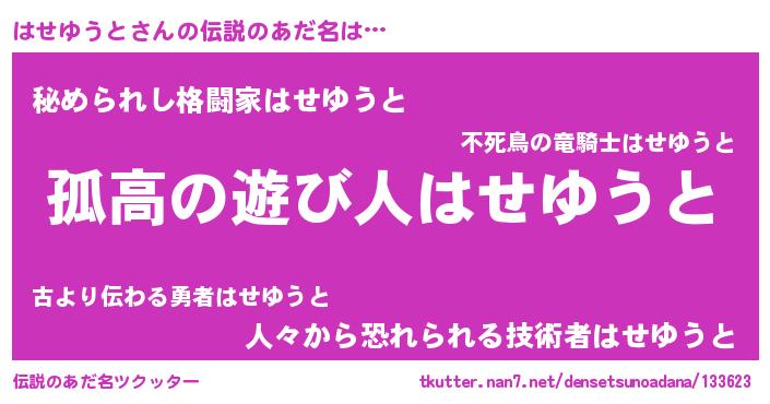 | ヒーロー風カッコイイあだ名 | 『暗黒騎士ハセ』『正義の使者はせゆうと』 |