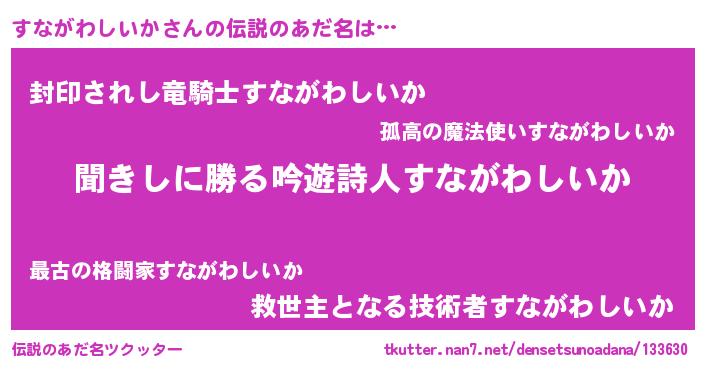 | 意味不明あだ名 | 『永久保存すながわしいか』 |