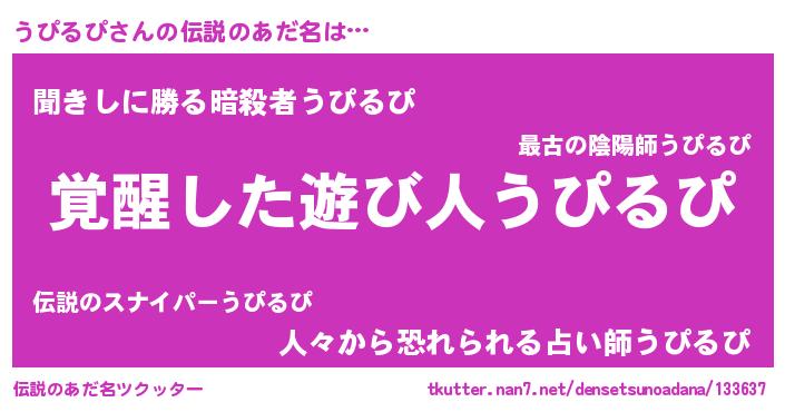 | 男性向けラノベタイトル風あだ名 | 『うぴるぴに滅ぼされるだけの簡単なお仕事です』 |