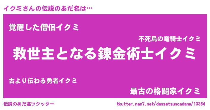 | 男性向けラノベタイトル風あだ名 | 『ノーゲーム・ノーイクミ』 |