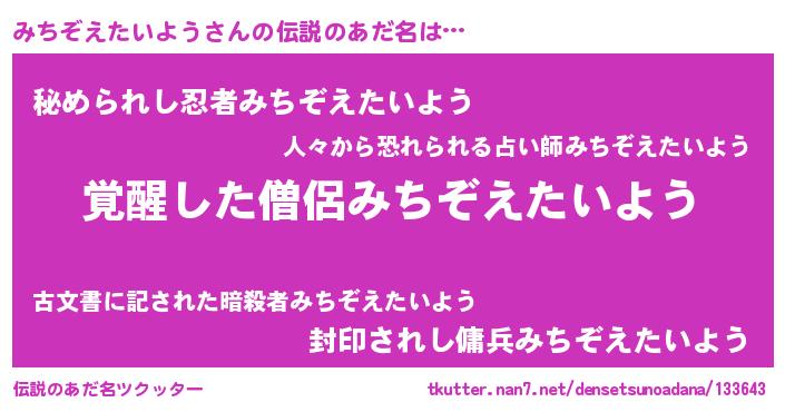 | 意味不明あだ名 | 『とにかく怪しいみちぞえたいよう』 |