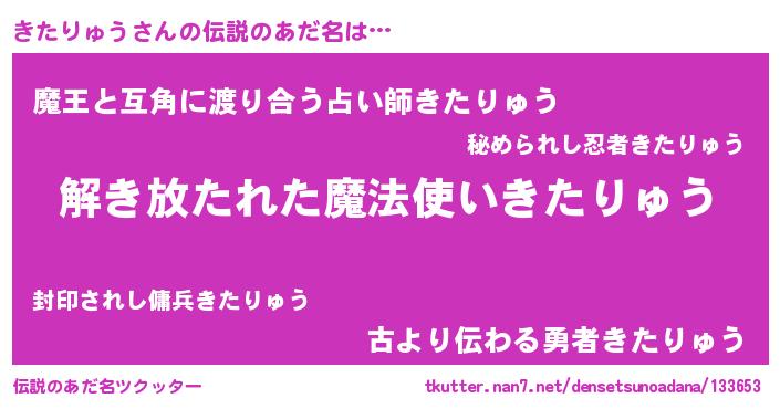 | 意味不明あだ名 | 『とにかく怪しいきたりゅう』 |