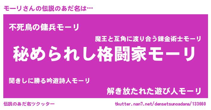 | 意味不明あだ名 | 『住所不定無職モーリ(8歳)』『自称モーリ』 |