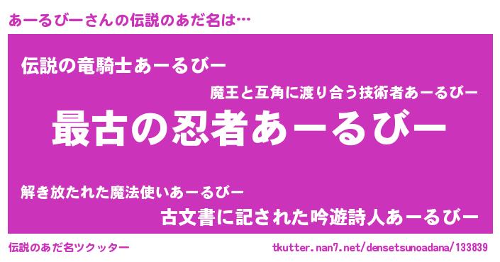 | 意味不明あだ名 | 『住所不定無職あーるびー(65歳)』 |