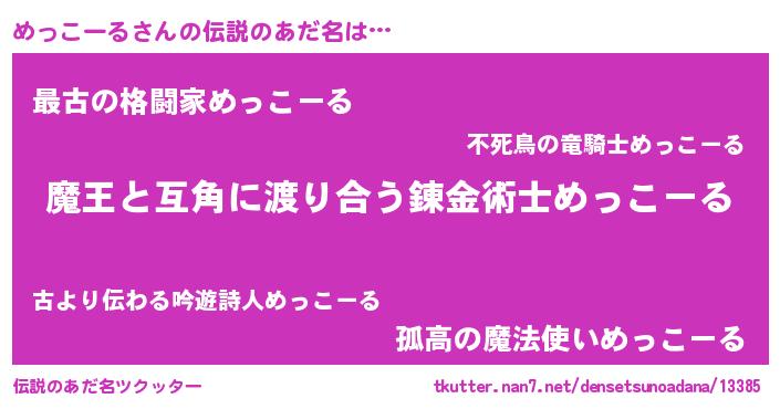 | 男性向けラノベタイトル風あだ名 | 『転生したらめっこーるだった件』 |