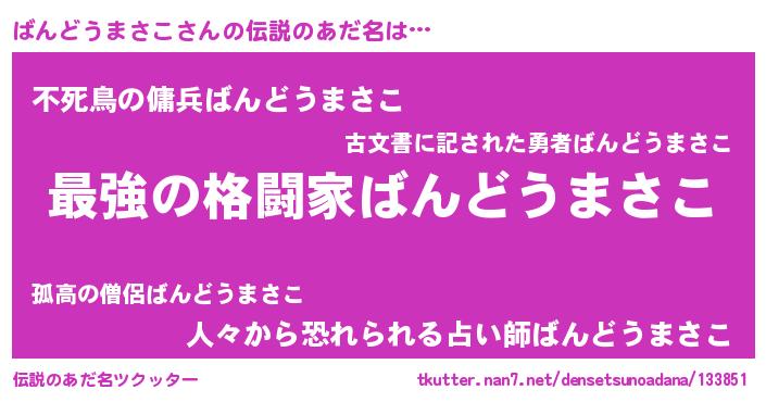 | 意味不明あだ名 | 『住所不定無職ばんどうまさこ(3歳)』 |