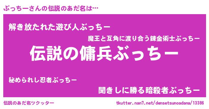 | 男性向けラノベタイトル風あだ名 | 『魔弾の王とぶっちー』 |