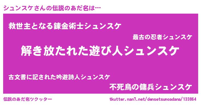 | 女子向けラノベタイトル風あだ名 | 『闇のシュンスケ』『シュンスケ恋絵巻』 |