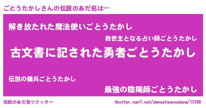 | 意味不明あだ名 | 『永久保存ごとうたかし』 |