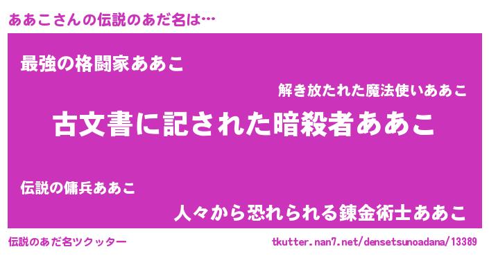 | ヒーロー風カッコイイあだ名 | 『仮面アアダー』『ネオアアコ』 |