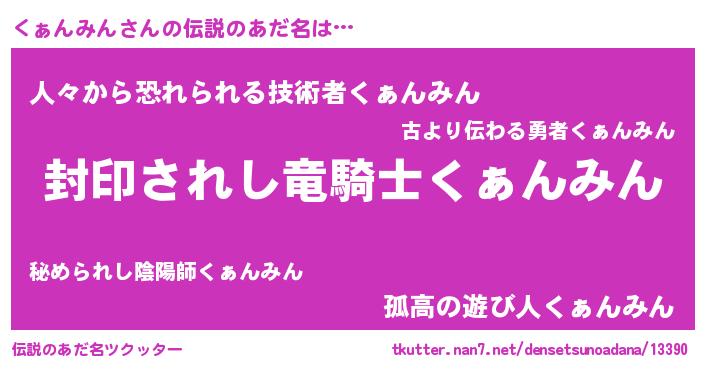 | 男性向けラノベタイトル風あだ名 | 『うちのくぁんみんが世界を掌握している!』 |