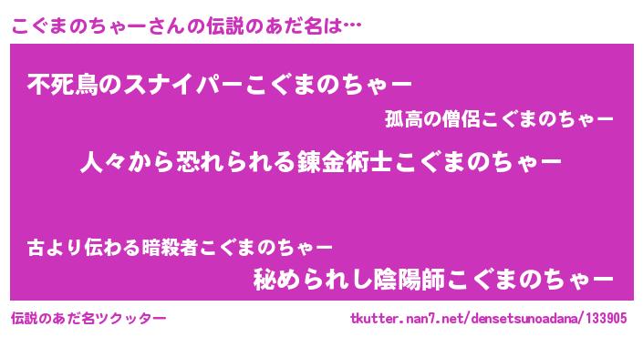 | ヒーロー風カッコイイあだ名 | 『友情の使者こぐまのちゃー』 |