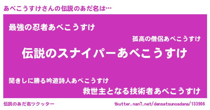 | 男性向けラノベタイトル風あだ名 | 『あべこうすけの憂鬱』 |