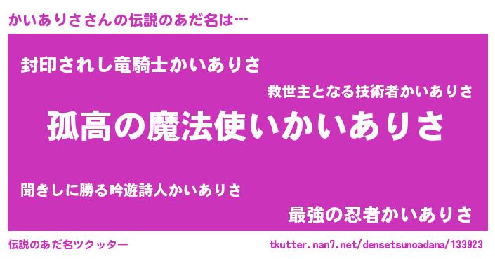 | ヒーロー風カッコイイあだ名 | 『暗黒騎士カイ』『スーパーカイアリサ』 |