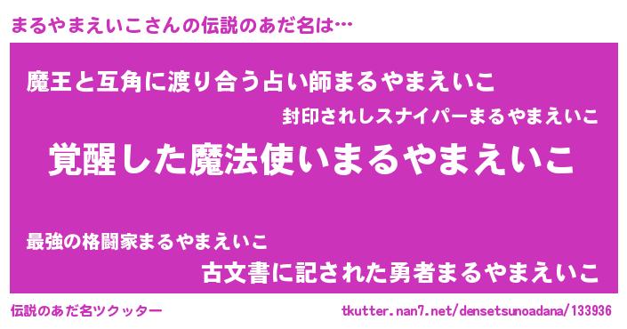 | ヒーロー風カッコイイあだ名 | 『天弓騎士マル』『ネオマルヤマエイコ』 |