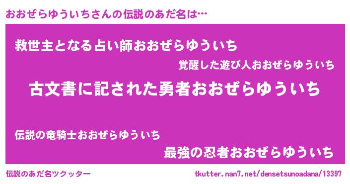| ヒーロー風カッコイイあだ名 | 『ネオオオゼラユウイチ』『仮面オオダー』 |