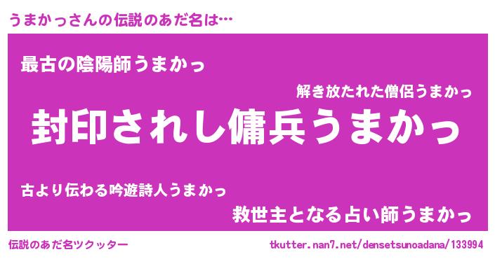 | ヒーロー風カッコイイあだ名 | 『仮面ウマダー』『スーパーウマカッ』 |